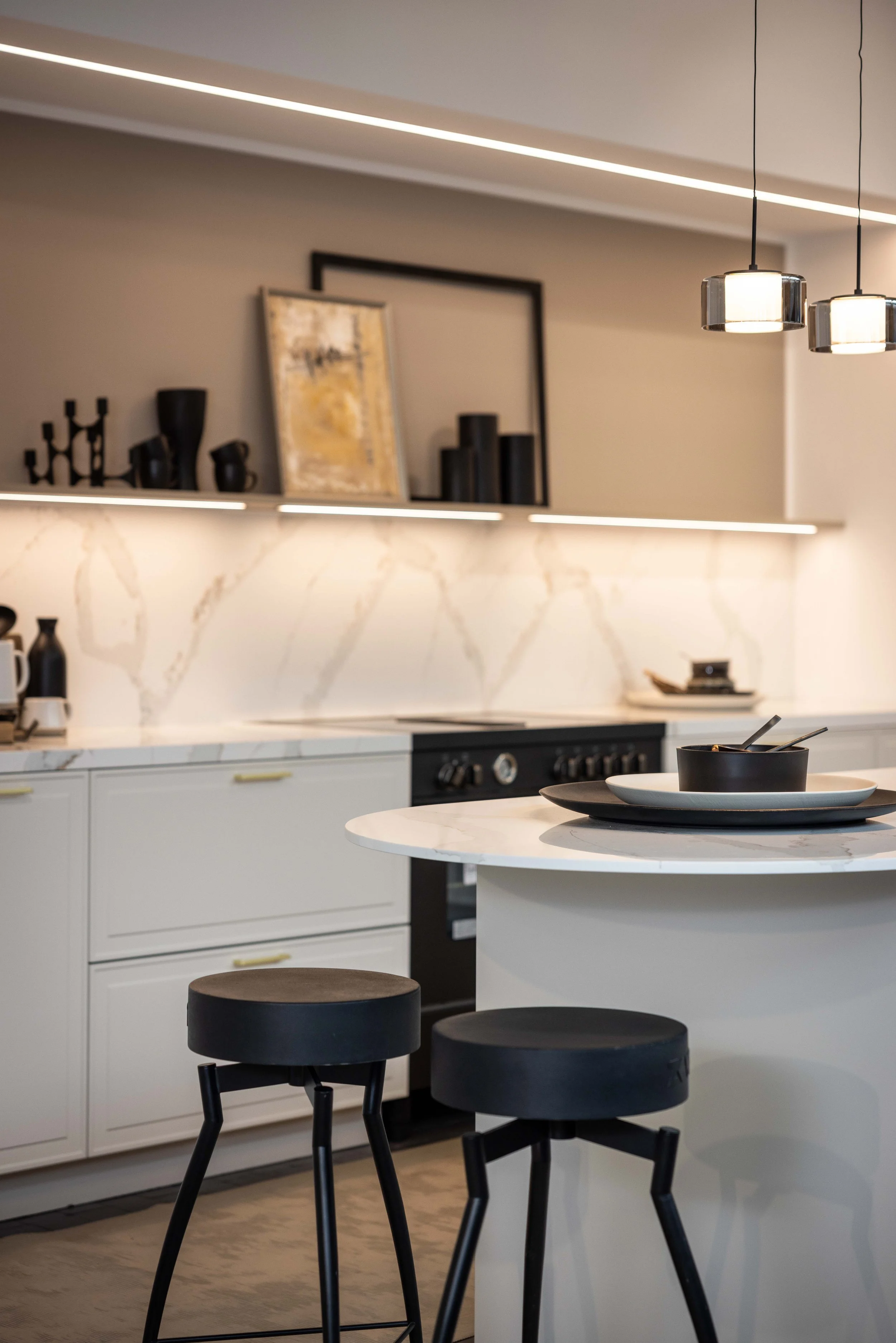 Our kitchens start from £35k (excluding preparation works), with final pricing dependent on your chosen materials, worktops, accessories, lighting, and overall layout configuration.