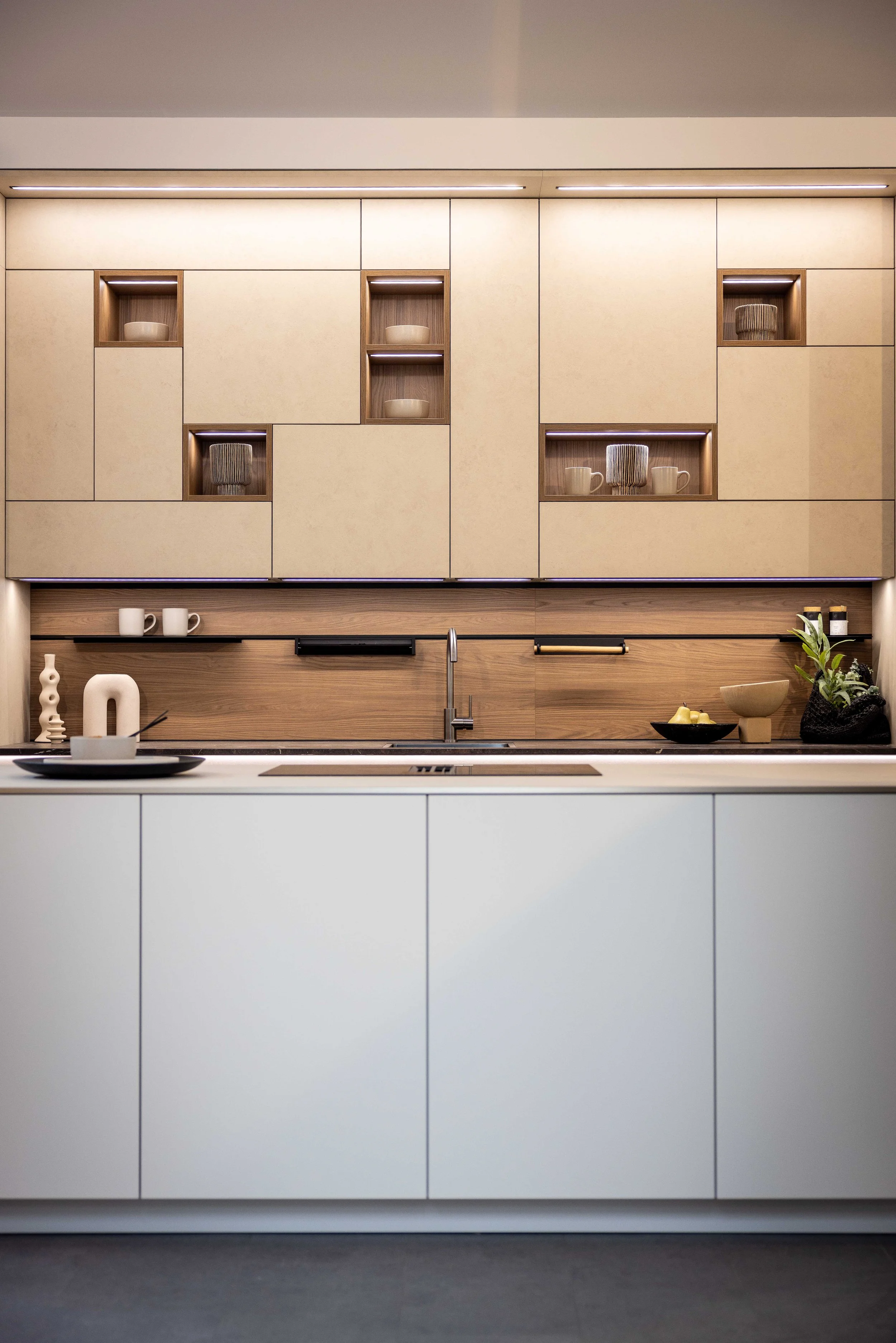 Rotpunkt offers a range of collections that reflect contemporary German design at its best. Their handleless kitchens are a hallmark of minimalist architecture, providing seamless lines and a calm, understated presence in the home. For clients seeking warmth and texture, their wood and textured finishes add depth and character without losing the modern edge.